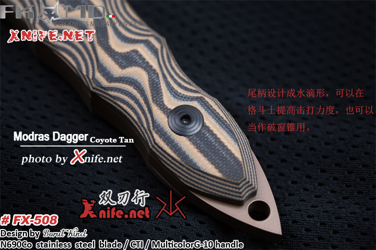 品牌 FOX (意大利狐狸品牌) 型号 # FX-508 "MODRAS Dagger” Design by Borut Kincl Official trainer of Slovenija Army