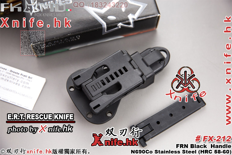 此款為意大利FOX公司设计生产的新款多功能求生救援刀。由N690CO钢材制作而成,具有至少7种功能,包括破窗器在内,非常实用。随刀附带一个定制贴合硬鞘,同时刀鞘上有两种携带方式,同时附带MOLLE可替换系统。