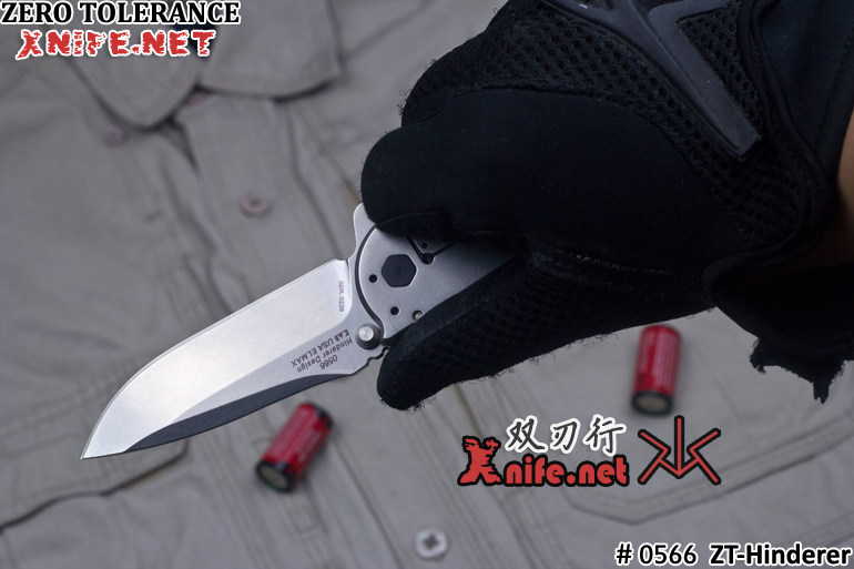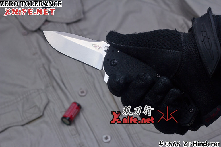 ZT零误差公司的0566是经典型号0560的缩小版。零误差公司与战术刀大师Rick Hinderer合作推出0560 0561两款经典型号之后,得到了广泛认可,但广大的ZT迷反映0560 0561系列尺寸太大,不适合日常使用,强烈希望零误差公司可以推出小号版本的供大家选择,因此,推出了改良之后的 0566,同样是与Hinderer合作设计,保留了0560的经典外观,但做了少数改进,开刀系统采用ZT的SpeedSafe快开系统;只要向下拨弄快开鳍,开启一定角度之后,剩余部分自动弹开,开刀迅速,而且非常省力。 主刀采用ELMAX粉末钢制造,具有极好的硬度和韧性;并采用石洗处理,耐磨易保养;手柄正面采用改性黑色G10,背侧采用不锈钢材质,一体框架锁结构。而更小的尺寸,更适合在城市中使用。