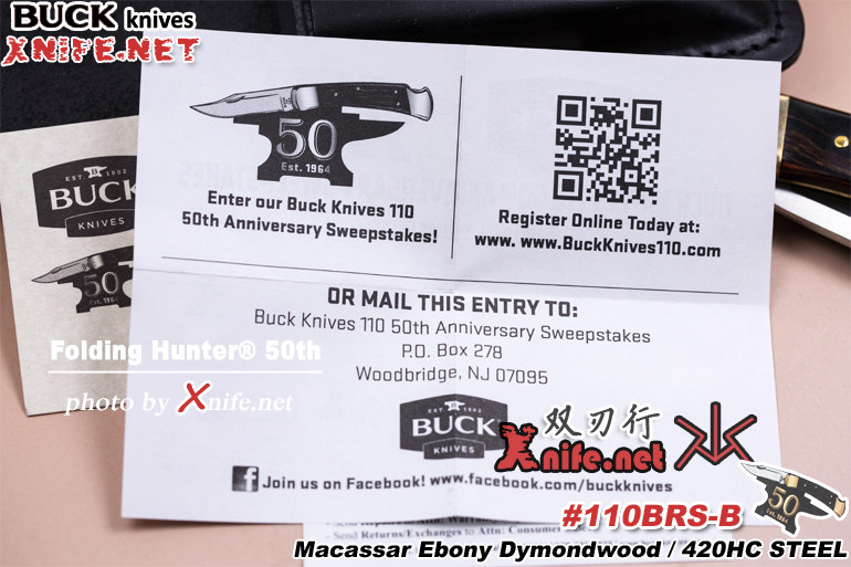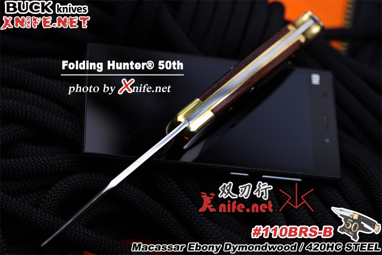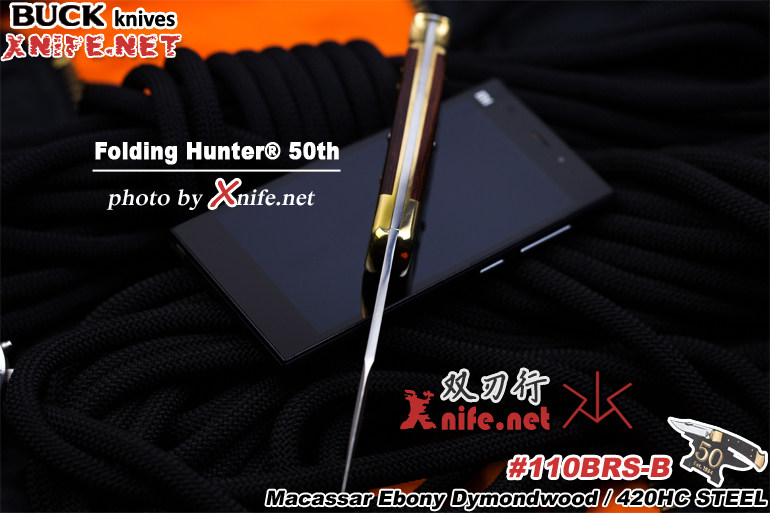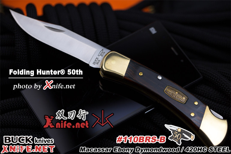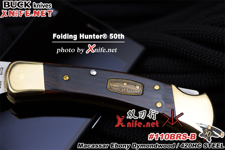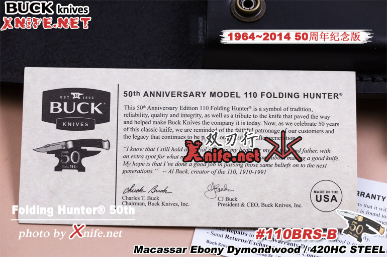 美国BUCK巴克公司出品,此款为50周年纪念版折叠猎手折刀,从1964年9月第一把巴克110折叠猎手问世,到2014年,巴克110已经走过了50个年头,成为了不朽的经典。