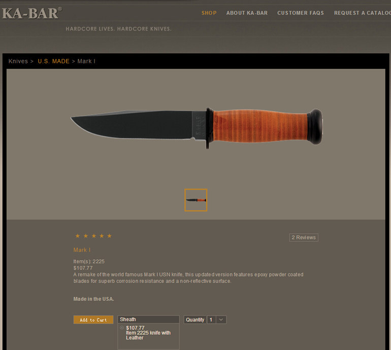 A remake of the world famous Mark I USN knife, this updated version features epoxy powder coated blades for superb corrosion resistance and a non-reflective surface.