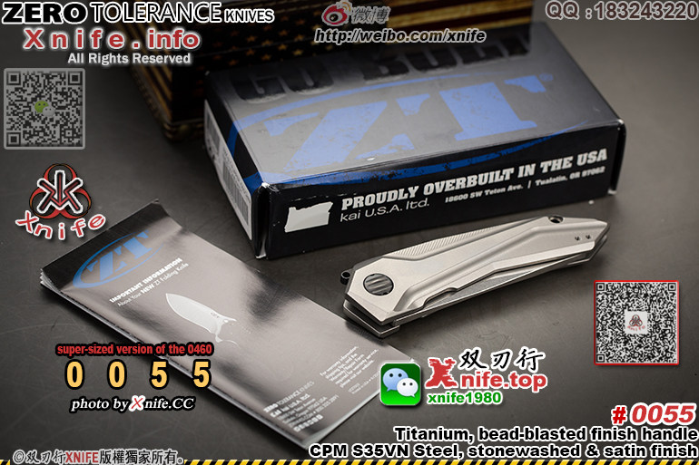 > Z.T 零误差(美国) > Zero Tolerance ZT零误差 #0055“Airborne” “空降”2018年新款 首款采用SLT隐藏式开启系统折刀 CPM S35VN粉末钢制造 石洗处理 KVT轴承 钛金属材质手柄 内附视频() ![]() |