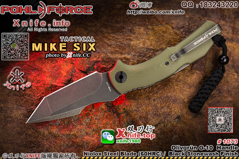 > Pohl Force 波尔·武力 > PohlForce波尔武力#1073 “MIKE SIX TACTICAL” "麦克6号"系列 T头黑色石洗特别版战术折刀 NIOLOX顶级钢制造 绿色G10手柄 附带原装收纳包() ![]() |