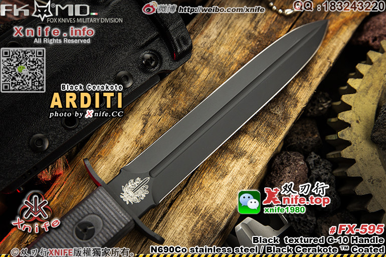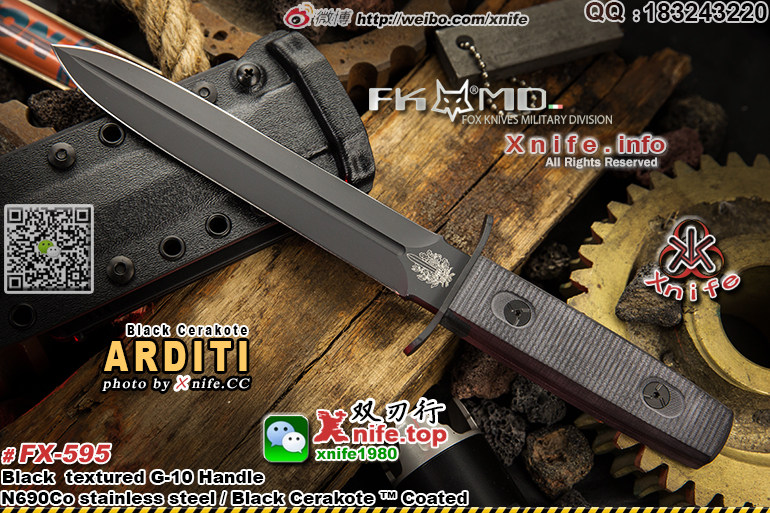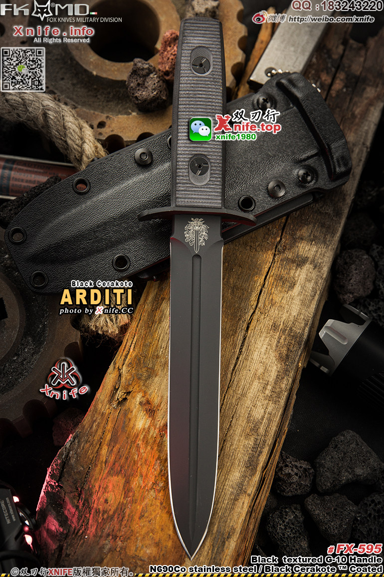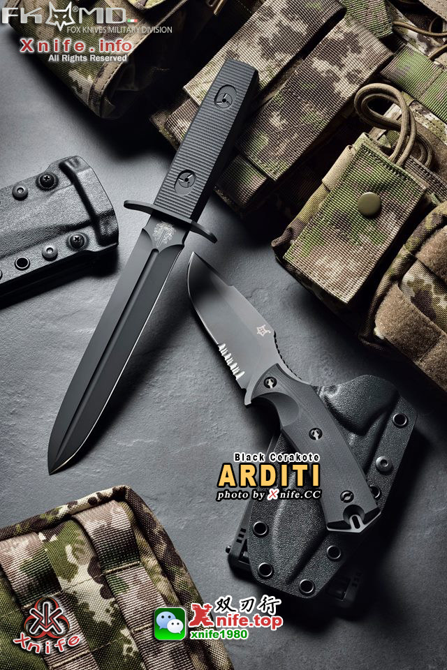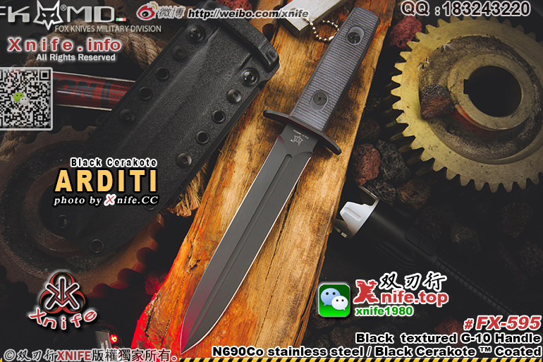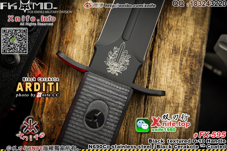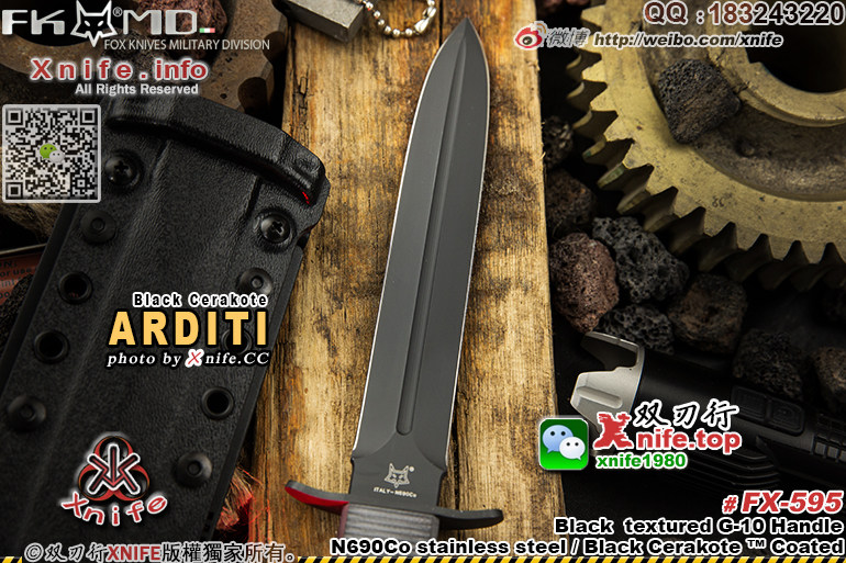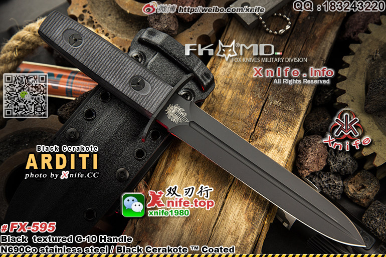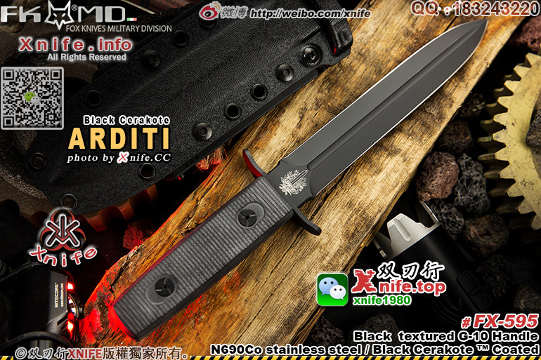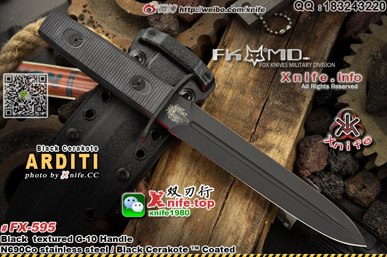 此款为FOX公司为了纪念意大利著名的特种部队“ARDITI” “阿迪提”航空团成立100周年(1917~2017)而特别制造的珍藏纪念版直刀。阿迪提是意大利一站开始成立的一支特别空勤团,属于精英特种部队中的特种部队,同世界著名的海豹部队、SAS一样,历史悠久,功勋卓越! 此款采用N690Co钢材制造,向阿迪提的经典款式致敬,但是做工要好的多;采用黑色G10作为手柄材质,表面有立体雕刻防滑纹路;经典双刃造型;不锈钢护手;配有Kydex鞘;十分具有收藏意义!