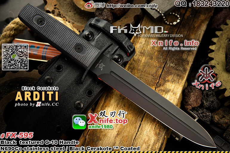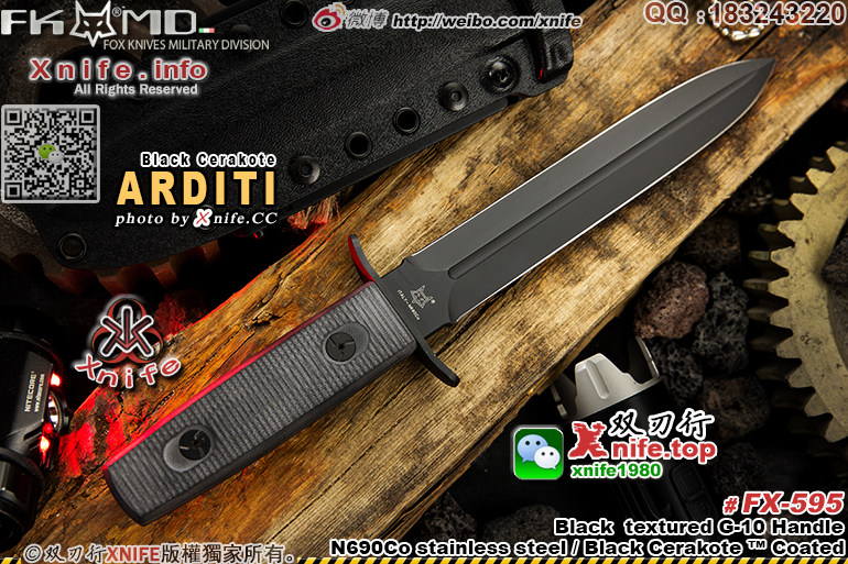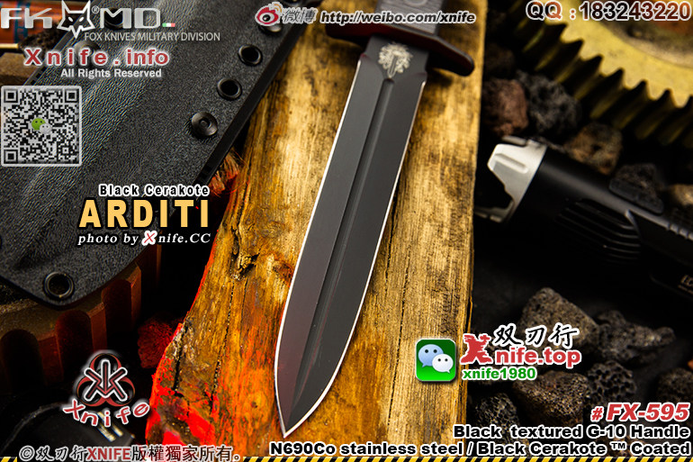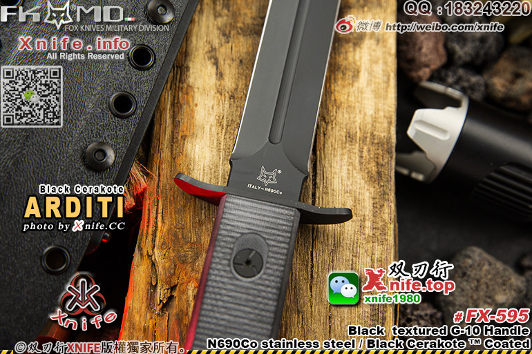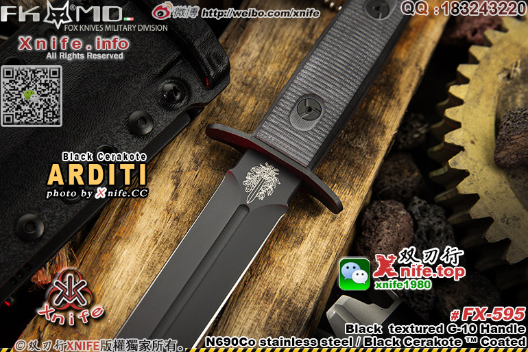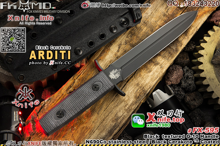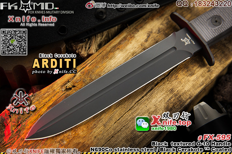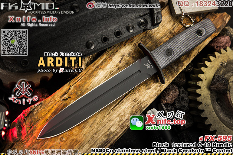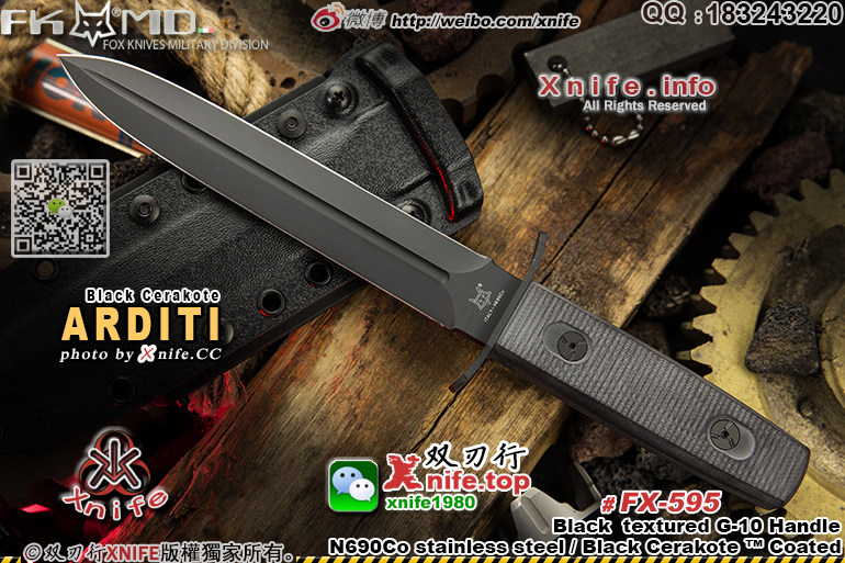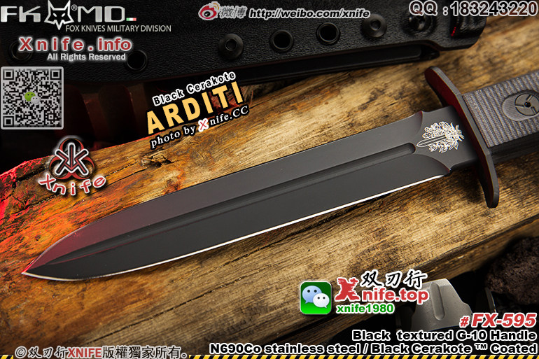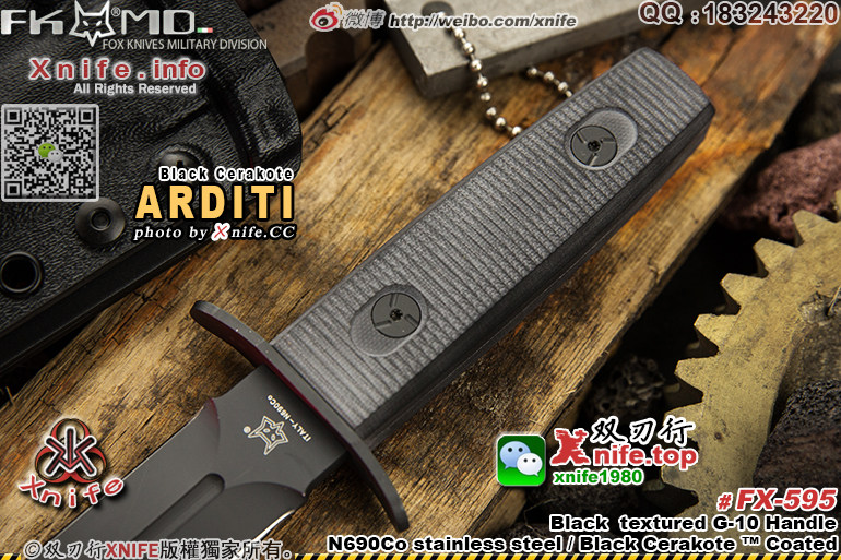此款为FOX公司为了纪念意大利著名的特种部队“ARDITI” “阿迪提”航空团成立100周年(1917~2017)而特别制造的珍藏纪念版直刀。阿迪提是意大利一站开始成立的一支特别空勤团,属于精英特种部队中的特种部队,同世界著名的海豹部队、SAS一样,历史悠久,功勋卓越! 此款采用N690Co钢材制造,向阿迪提的经典款式致敬,但是做工要好的多;采用黑色G10作为手柄材质,表面有立体雕刻防滑纹路;经典双刃造型;不锈钢护手;配有Kydex鞘;十分具有收藏意义!
