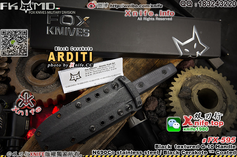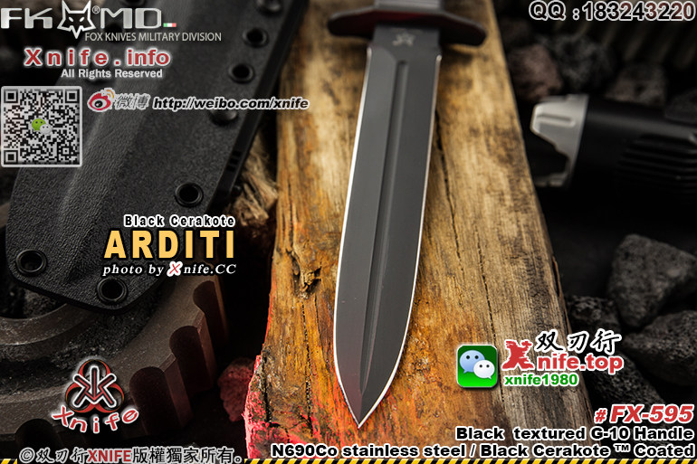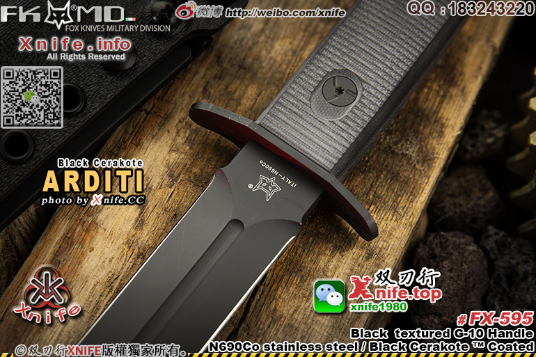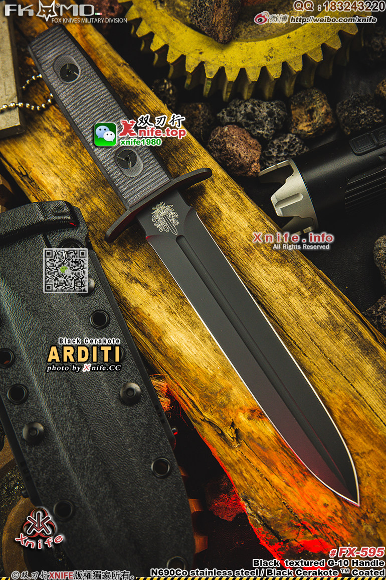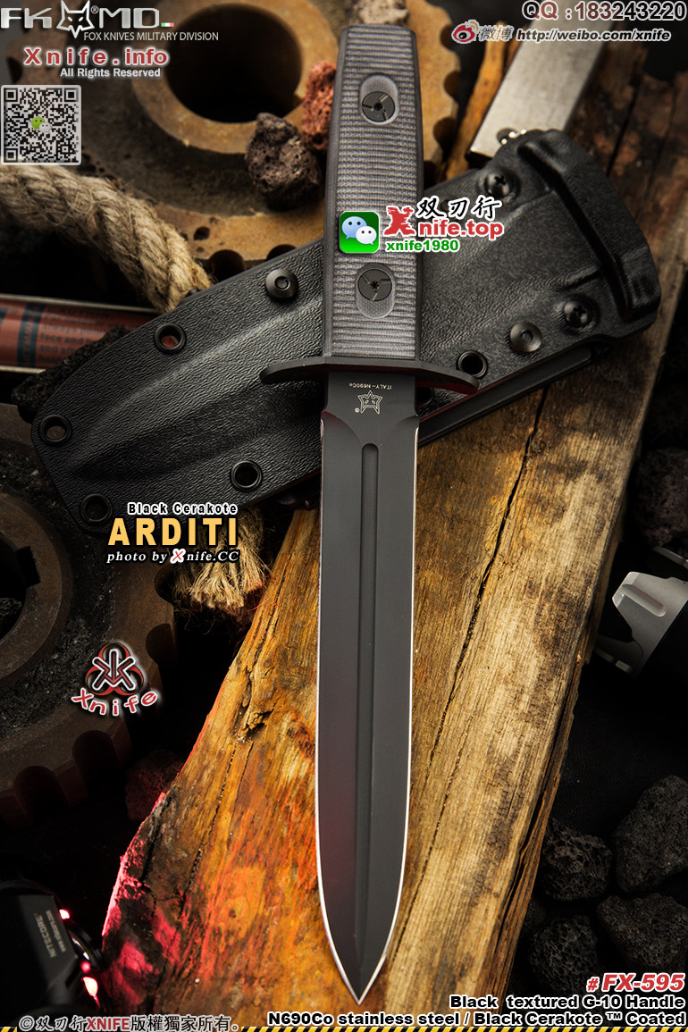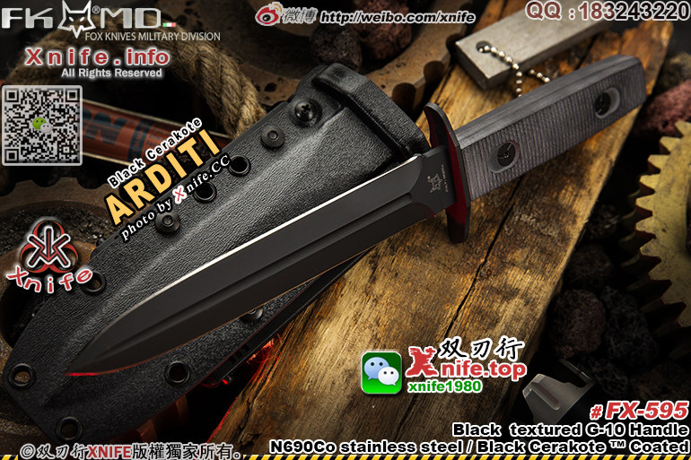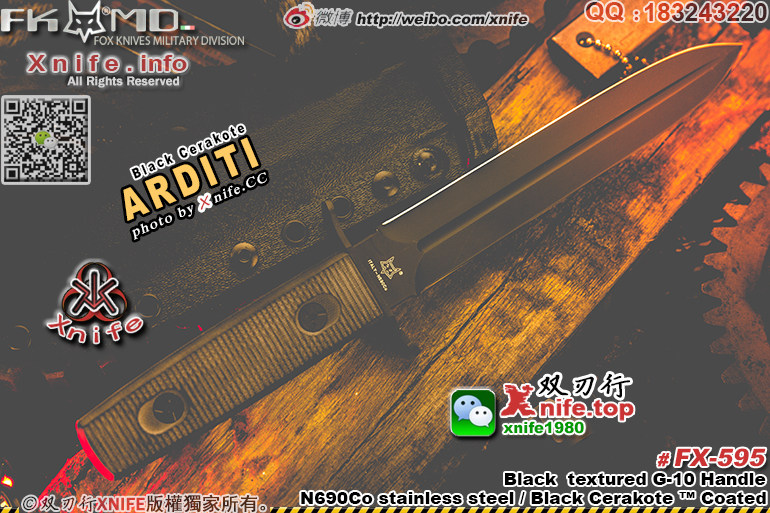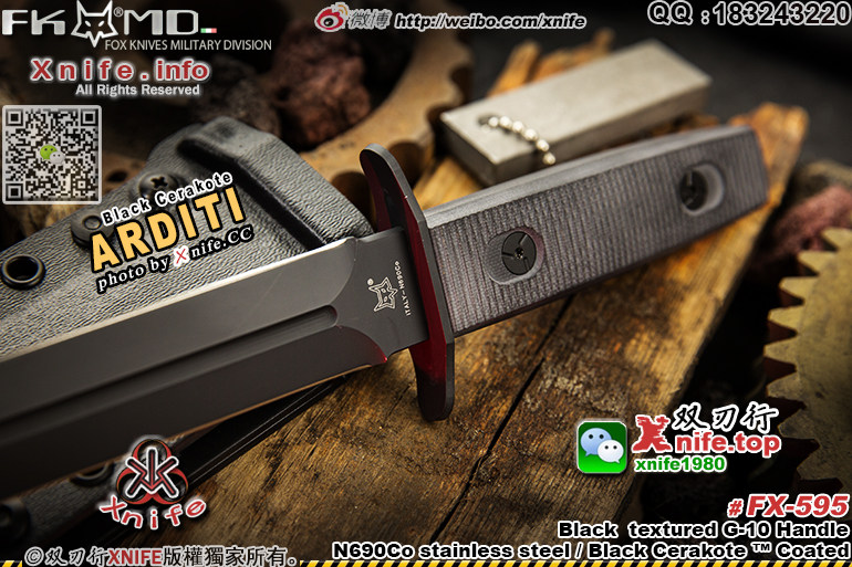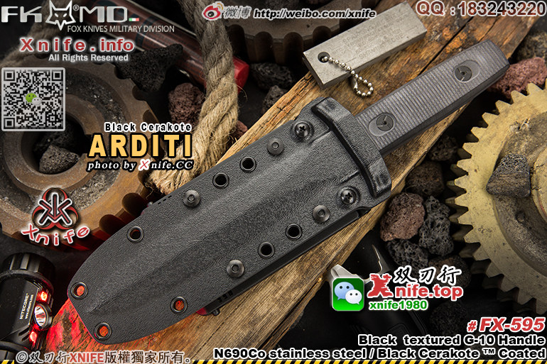 此款为FOX公司为了纪念意大利著名的特种部队“ARDITI” “阿迪提”航空团成立100周年(1917~2017)而特别制造的珍藏纪念版直刀。阿迪提是意大利一站开始成立的一支特别空勤团,属于精英特种部队中的特种部队,同世界著名的海豹部队、SAS一样,历史悠久,功勋卓越! 此款采用N690Co钢材制造,向阿迪提的经典款式致敬,但是做工要好的多;采用黑色G10作为手柄材质,表面有立体雕刻防滑纹路;经典双刃造型;不锈钢护手;配有Kydex鞘;十分具有收藏意义!