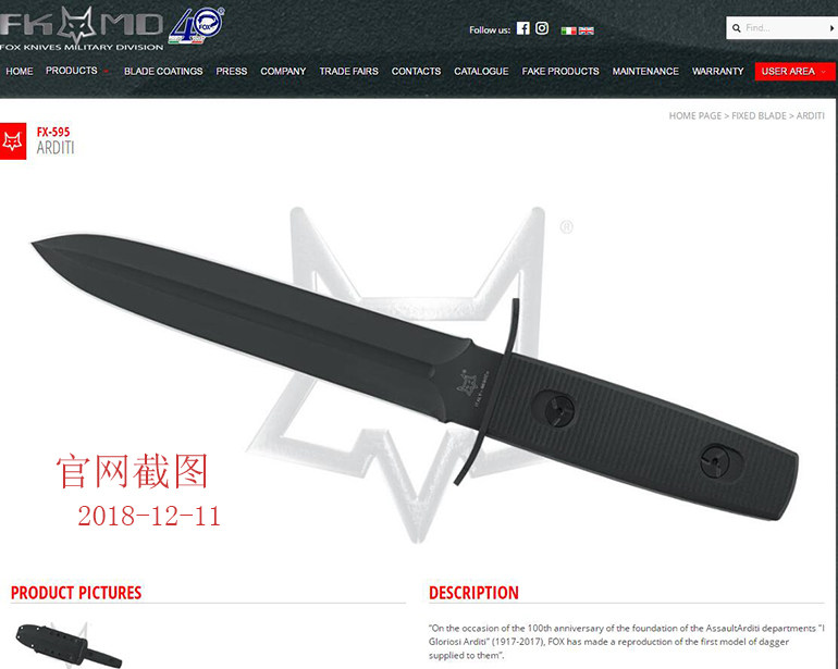 “On the occasion of the 100th anniversary of the foundation of the Assault departments "I Gloriosi Arditi" (1917-2017), FOX has made a reproduction of the first model of dagger supplied to them”.