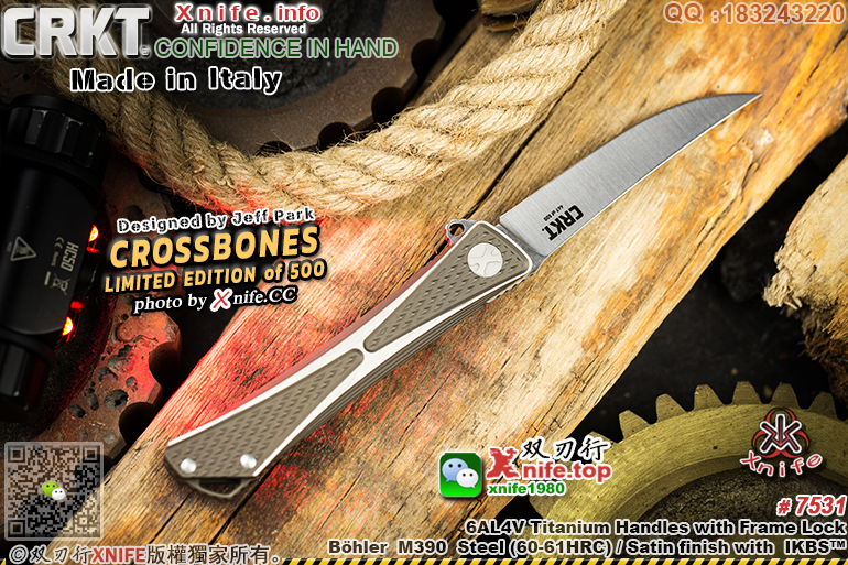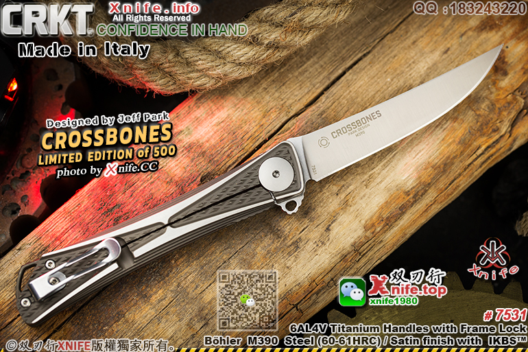 品 牌 CRKT 哥伦比亚河 (官网地址:www.crkt.com) 型 号 # 7531 “CROSSBONES - LIMITED EDITION” “交叉骨”全球限量500支限量版钛金属折刀