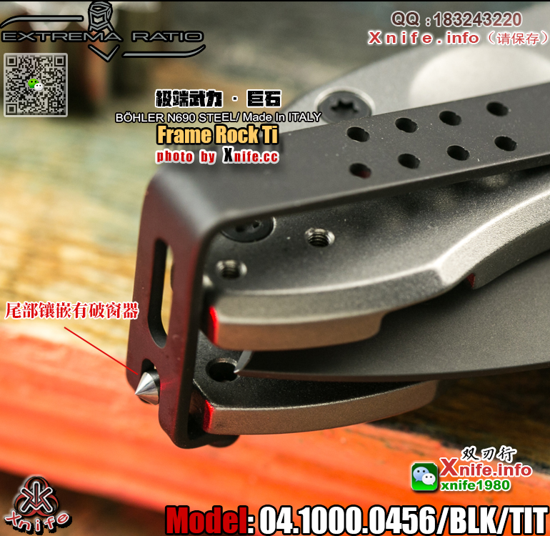 Frame,一体框架锁,主轴为轴承结构,尾部配有破窗器。 |