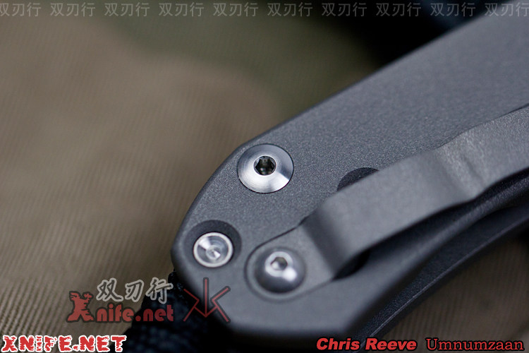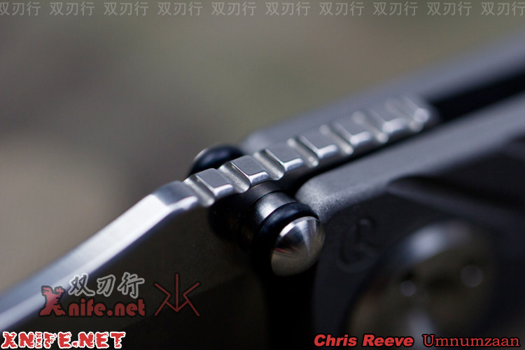 当chrisreeve完成了全钢一体刀的制作后,兴趣就转到如果把一体刀的坚固细致精神延续到一把Reeve折刀上。当chrisreeve看到线锁结构后,即对线索结构的简单实用而认可,又不能接受线锁过于薄弱。Reeve仔细分析了钢线锁存在的问题,一是钢线锁太厚会失去弹性而无法完成弯曲加锁的功能,二是钢线锁太厚解锁会很困难。找到了问题的症结,Reeve就着手选择可以避免上述问题的线锁材料,而钛合金正是最佳材料(6铝4钒钛合金90%Ti、 6%Al4%V、)。因为钛合金经过合适的热处理,具有很好的记忆性和弹性,能记忆确定弯曲的弧度,能很顺滑地完成加厚线锁上锁解锁这一概念的机械动作。但只加厚线锁Reeve并不满足,因为热处理后的钛合金硬度仍然不能和钢相比,于是Reeve还在钛锁片的顶端,镶嵌了超硬质合金,来确保线锁到达耐磨损的极限。这个小细节,是所有喜欢SEBENZA的朋友必须特别注意的,也是体会Reeve折刀过人之处的重点。