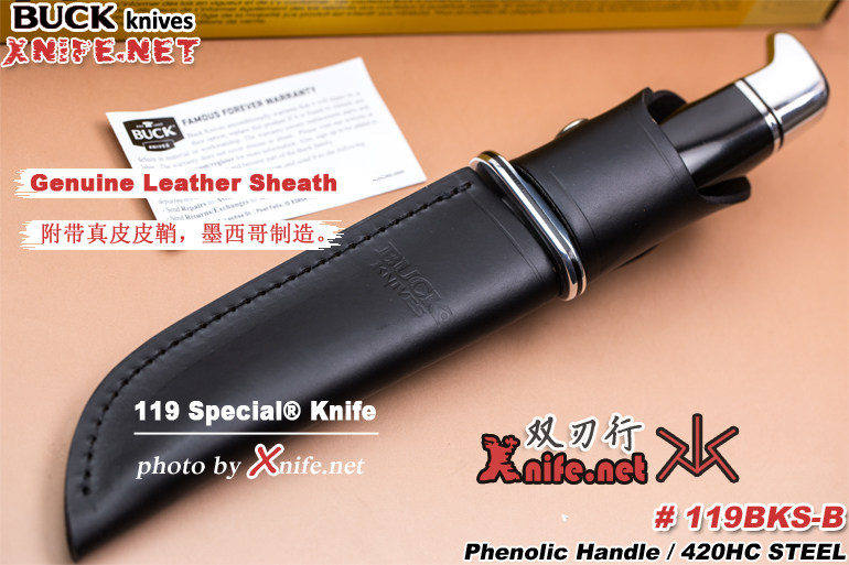 此款巴克119BKS是巴克产品中,最著名的一款,也是最经典的一款。采用420HC钢制作,便于日常维护;配有牛皮刀鞘,方便耐用。