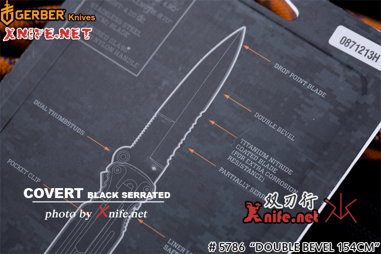 刀背部份为假刃设计(未开锋)。 此款刀具隶属Gerber Applegate-Fairbaim种类的刀,是单手开启的,可适用许多情况。 精密可调整枢轴,栓扣紧固扣钮。 双斜面刀身设计,刀刃背面为假刃设计流畅设计,握把具有止滑效果,就算水中使用也可以,手感极佳,不易脱落。